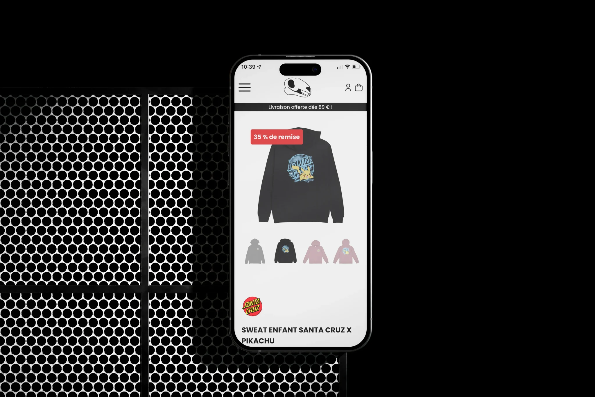 Pour le logo, mon approche s’est ancrée dans l’histoire locale. Je suis parti sur l’idée d’un crâne de rat sous une forme épurée et moderne, tout en se rapprochant de la forme d’un sticker. Ce choix n’est pas anodin : le crâne de rat est un des symboles d’Arras, il trouve ses origines dans l’histoire de la ville, et se décline aujourd’hui sous de multiples formes.